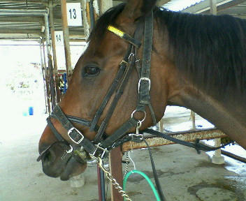 馬装をまともにさせないことが有名で、特に頭絡をつける祭に、人間では届かないところまで顔を上げてしまう。