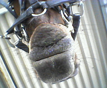 上唇がよく動く。水を差し出していらないときは上唇だけでバケツを押し返す器用もの・・。背後を見せると肩のあたりを上唇でもそもそしてくる。