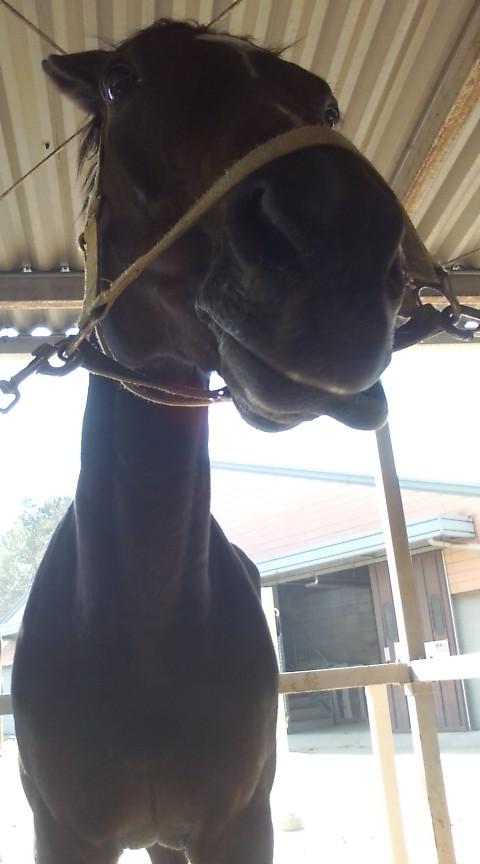 馬場にでるとなんか、他の馬に異様に怒ってる(苦笑)特に近くを通り過ぎた駿ちゃんにかなり怒ってる。