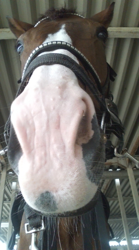 前、チップに乗ったときに前を走っていて、チップが馬大好きな子で、止めても止めてもじりじり前の子にくっついていってしまって、お尻にチップが鼻をもふもふくっつけててもへっちゃらな顔をしていた子って感じで覚えています。