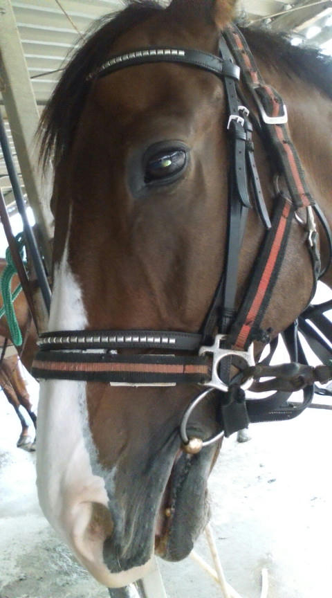既に外に出されていて、洗い場に迎えに行ったのですが、私がベルを解いて用意した馬具を用意した場所に連れて行こうとしましたら、