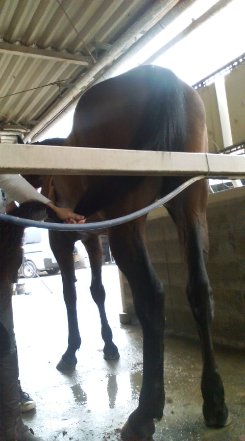 で、レッスンの後は丸洗いなんですが、この日はこの後も乗る人がいたので