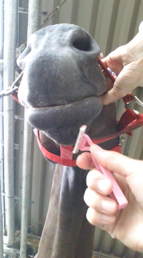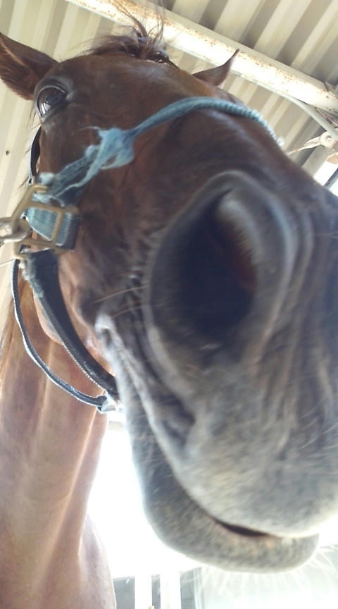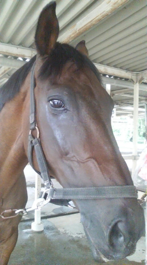 一番最初に、軽速歩とか習ってた時に乗ったことがあるという馬で、私に初めて噛み付いたこです(笑)