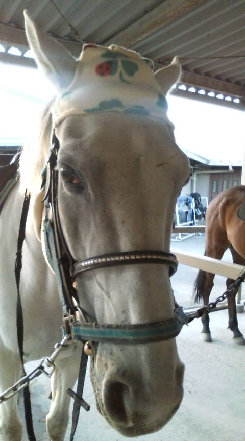 この時間は、風が出てきて、他の馬たちがちょっと神経質になっているところが合ったんですけど、シャインバードだけはとっても落ち着いていてくれてたすかりました。イイコイイコ^^