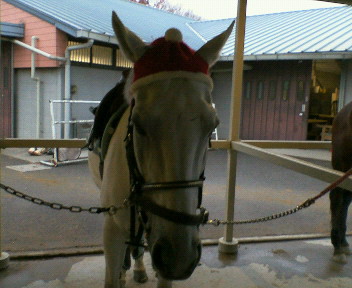 カクの為に用意した背中開きゼッケンとガースカバーも装着。サンタの帽子も装着です。おじちゃんかっこいいZE!