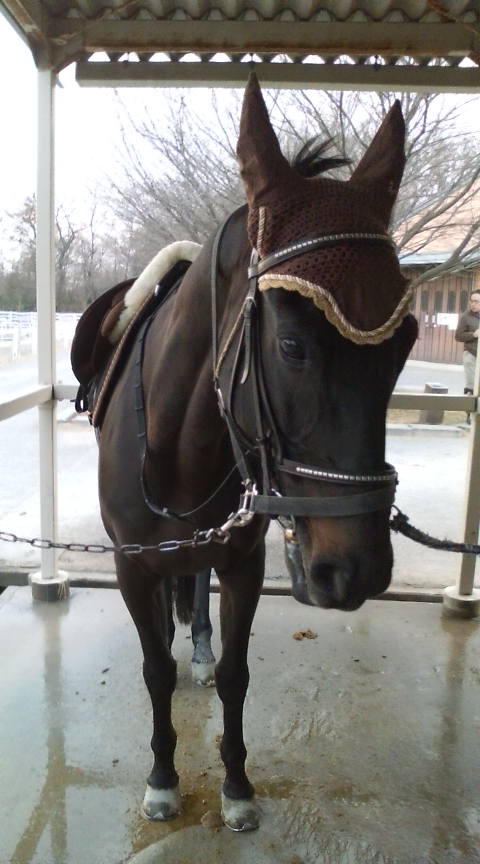 カクくんとは違い、小さくて細くて・・・体高はそれほど小さくないみたいですけど、腹帯は回る回る・・・頭絡のベルトもカクちゃんやボンちゃんと比べると穴3つほど違います。小さい!!!