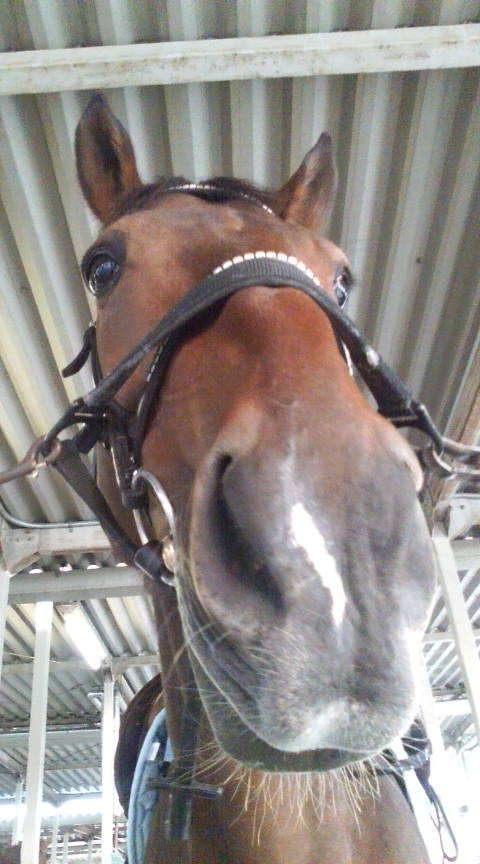 とにかくあまったれで人懐っこいので馬装は楽だけど、届く距離にいると顔をくっつけてきたりはなでもふもふしてきたり口でぱくぱくしてきたりと、とにかく甘えてくるので、邪魔といえば邪魔?でも瞬時にかわいいから許してしまう。