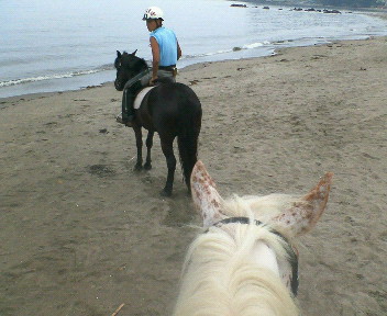 しかし、外乗の馬というのが、先導馬に従うように調教されていて、先導馬が走らなければ走らない、となっているので、とっても歩いているときはおっとり。油断すると直ぐにその辺に生えている草や海岸や海に落ちている海草を食べてしまう・・・一番以外だったのは、海の塩水が全く平気なんですって!