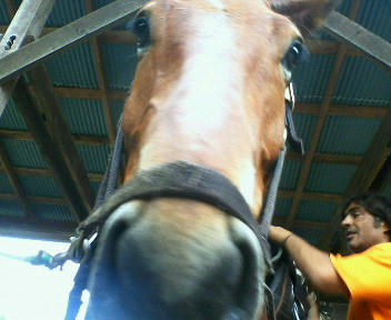 馬装も何もやんなくっていいってことで、前回のったときに「なにそれ!」って目つきでつけさせてくれなかったイヤーネットをそっと用意しておいたらつけてくれましたvvv