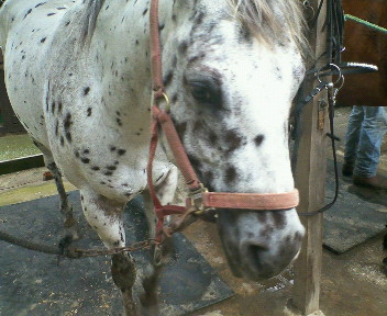 洗い場もジョーポジションがある位で、なかなかそこ以外は入らないんですけど、今日は一気にクラブの人が馬装するってことジョーポジション以外の洗い場にいれられてしまい、始めの内は良いんですけど、馬が集まり、人が集まってくると、そわそわはじまって、人が前を通りかかるだけでギクリとして恐がって首を高くあげたりして、ほんと、可愛そうで、クラブの方に、「ジョーがかわいそうなんですけど、洗い場、移せませんか?」というと、クラブの方はなれた口調で「」大丈夫ですよ^^」と返してきますが、ここで状況一変です。