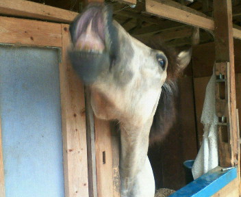 今日なんてね、私が馬上にいるとき、首をひねって私の鐙のところの靴に鼻をくっつけて私を見上げてくるんですよ><!!!