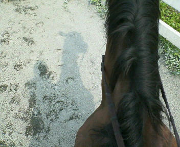 拍車、長鞭のフルコース。反応は良くないが、エンジンがかかってくればはしってくれる。常歩はすんごいゆっくりだが、軽速足は結構早い。